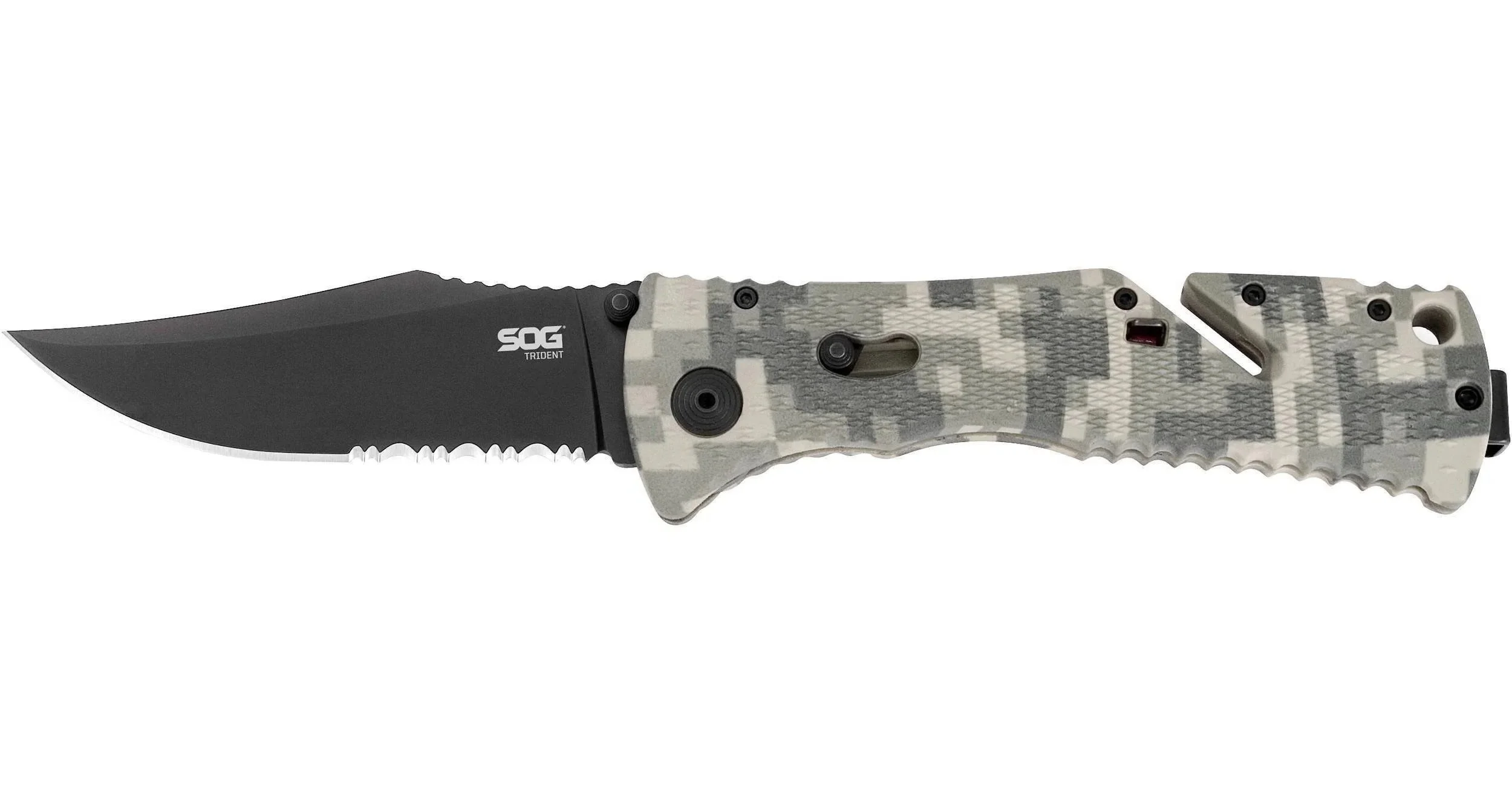 SOG was a known military knife before we came on board, but it was a "pretty knife”, not an issue knife. Utilizing relationships within Special Operations/ Navy SEALS we completely reintroduced SOG, reinvented it and became a major issue supplier to specOps worldwide. This is the SOG Trident Folder, designed with SEAL boat crews who were prohibited from opening a knife on an inflateable boat. Our innovative cutaway in the handle allows an operator to cut cord or line without exposing the blade. Simple, elegant, perfect.
